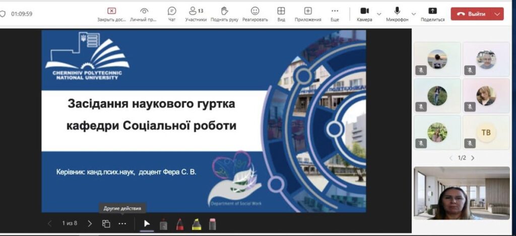 З мотиваційним вітальним словом до здобувачів освіти звернулася керівниця гуртка — Фера Світлана Володимирівна, доцент кафедри соціальної роботи, кандидат психологічних наук. Вона відзначила активність учасників гуртка, їхні наукові здобутки та наголосила на важливості науково-дослідної діяльності для професійного становлення майбутніх фахівців соціальної сфери.